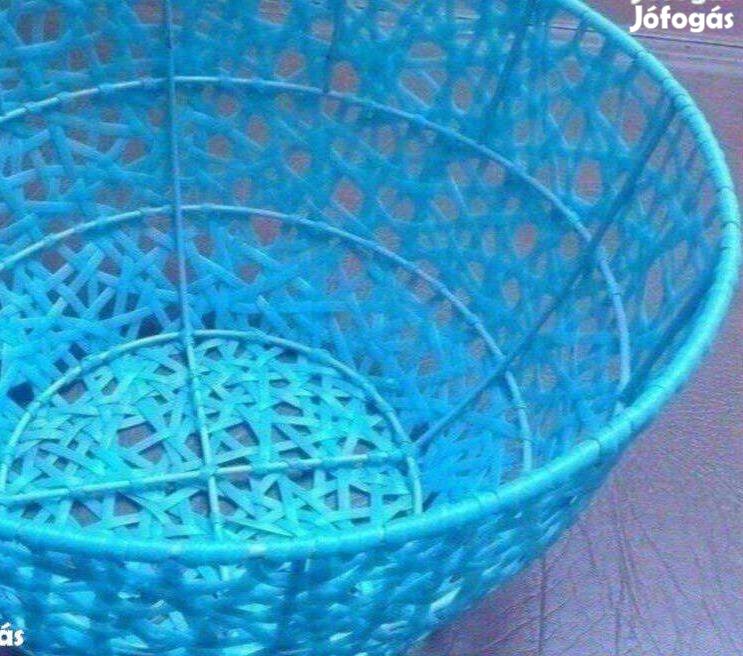 Eladó nagy méretű műanyag rattan fonatú füles kosár szép állapotban . méret: 30 cm magas 35 cm átmérő. Eladó gyönyörű kék színű, nagy méretű műanyag fonott kosár, kínáló újszerű állapotban. méret: 20cm magas átmérő-30cm ár:3300Ft/db!!!!