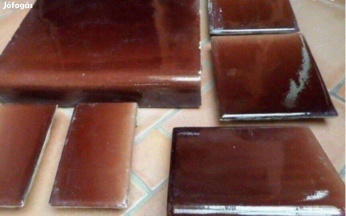 Eladó 31 db különböző méretű barna mázas kerámia kályhacsempe polgári házból. Többcélú felhasználás is lehetséges.Legnagyobb méretű 50x50 cm