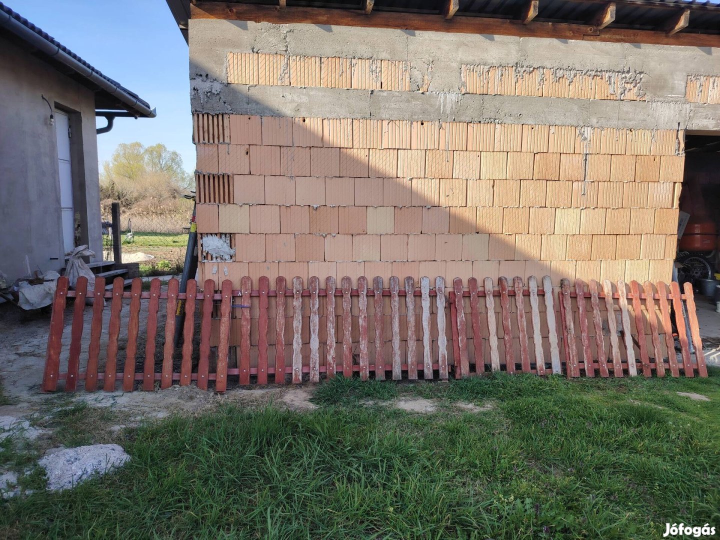 Eladó vas vázon lévő fa kerítés léccel borított kerítés elemek