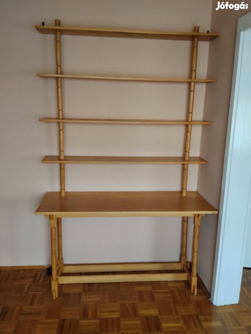 Kombinált könyvespolc és íróasztal, használt,de jó állapotú eladó. Az íróasztal része 140x50 cm-es, a teljes magasság 210 cm.