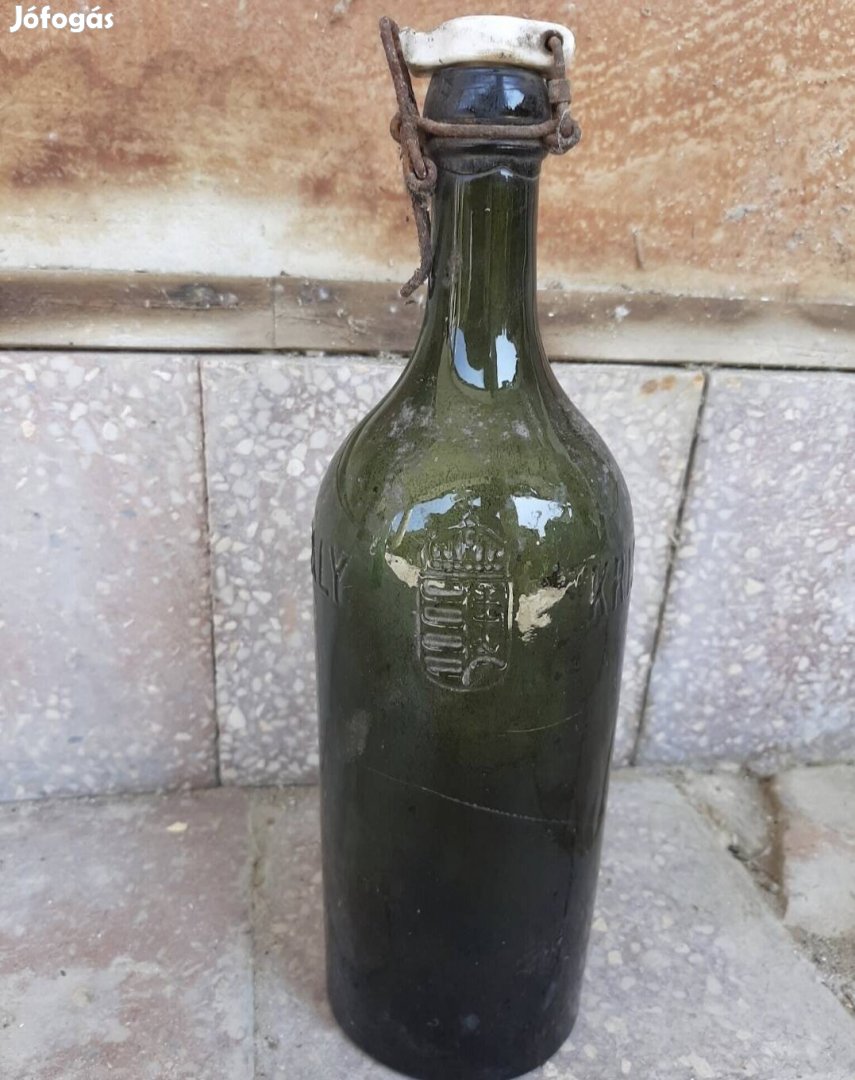 Csattal zárható, kupak rész porcelán. Régi zöld üveg.