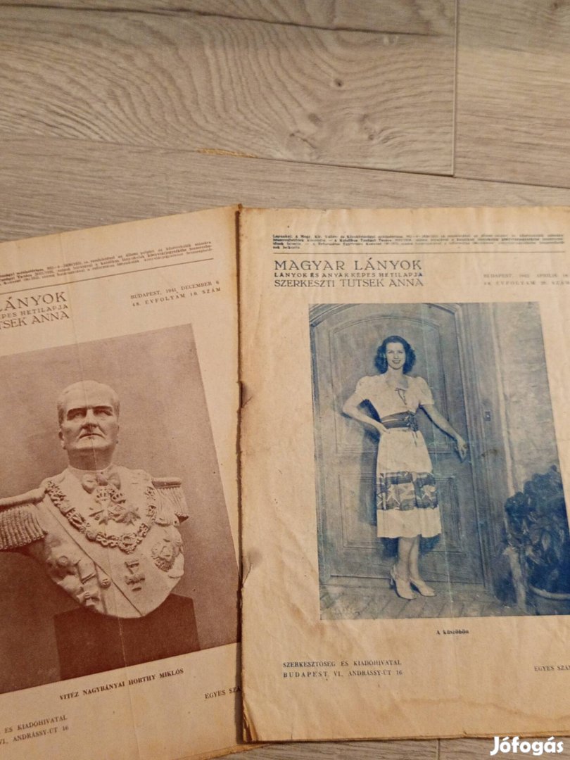 Az 1940- és években megjelent Magyar Lányok Asszonyok Lapja több példánya eladó . Szépirodalmi,társadalmi, háztartási folyóirat ,néhány Otthonunk c.melléklettel.