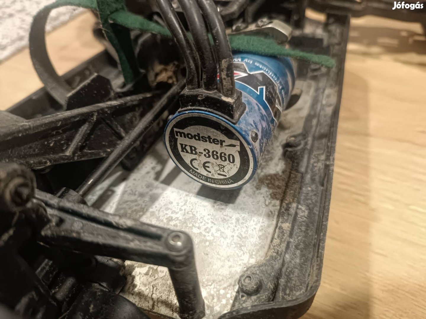 Modster Buggy 1/8 , szervó és BL motor van benne.A difik rendben vannak, szilikon olajjal fel vannak töltve.A bódét kicsit megviselte az élet.3S akkuval használtam, kisebbel nem is megy rendesen.
