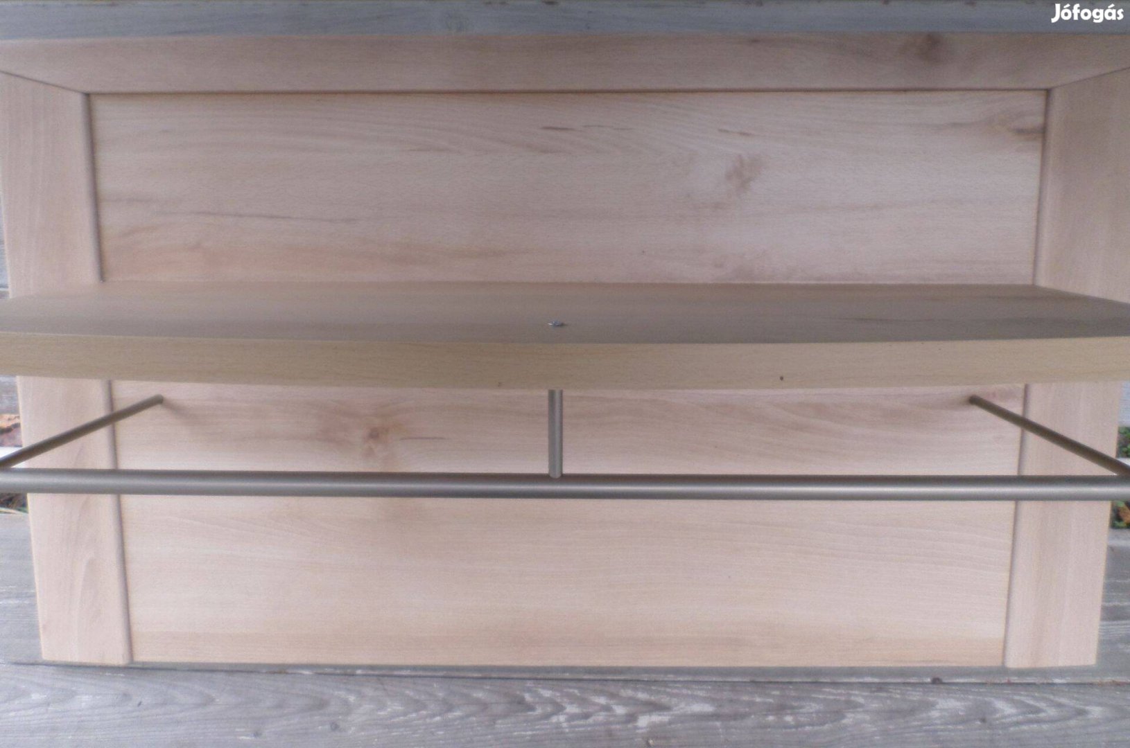 Eladó Új német natúr fa polc króm csővel. méret:90 cm széles ,50 cm magas,30 cm mély