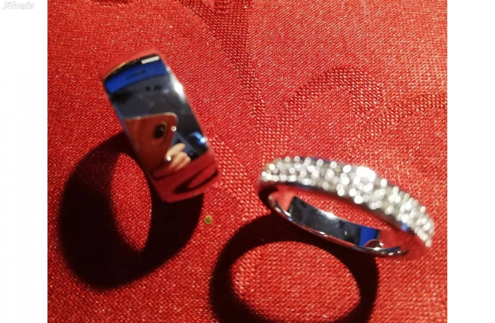 Eladó a képen látható Tchibo-ban vásárolt 2 db-s gyűrűszett. A köves gyűrű szélessége 4 mm, átmérője 17 mm, üvegkristályokkal van kirakva. A másik gyűrű 8 mm széles, átmérője szintén 17 mm. Mindkettő anyaga sárgaréz. Gyönyörű állapotúak, dobozban voltak tárolva, hibátlan állapotúak. Egyben eladó. Előreutalás után /ár+pk/ csomagküldővel postázom.