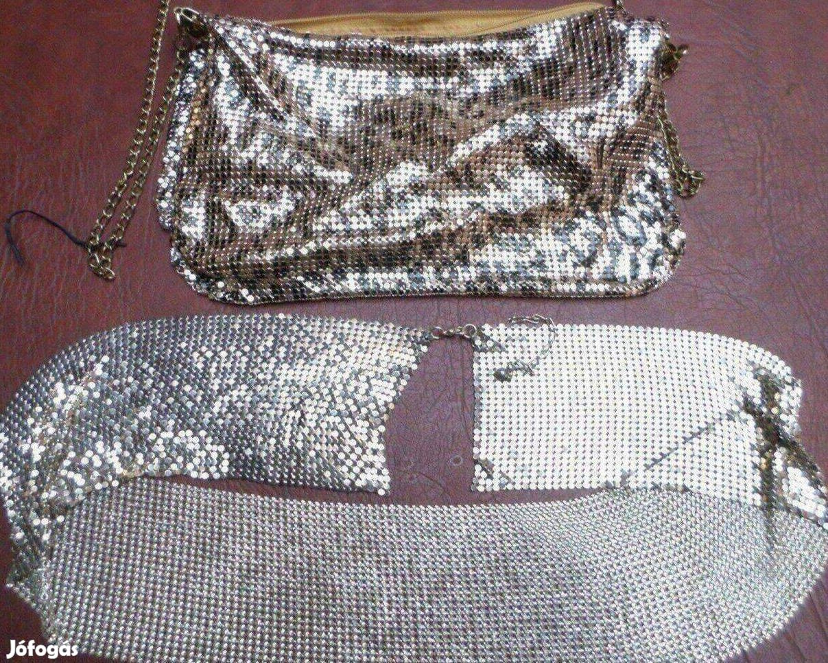 Eladó női fém design alkalmi táska övvel új állapotban féláron. méret:25x20 cm ,öv-80 cm bő