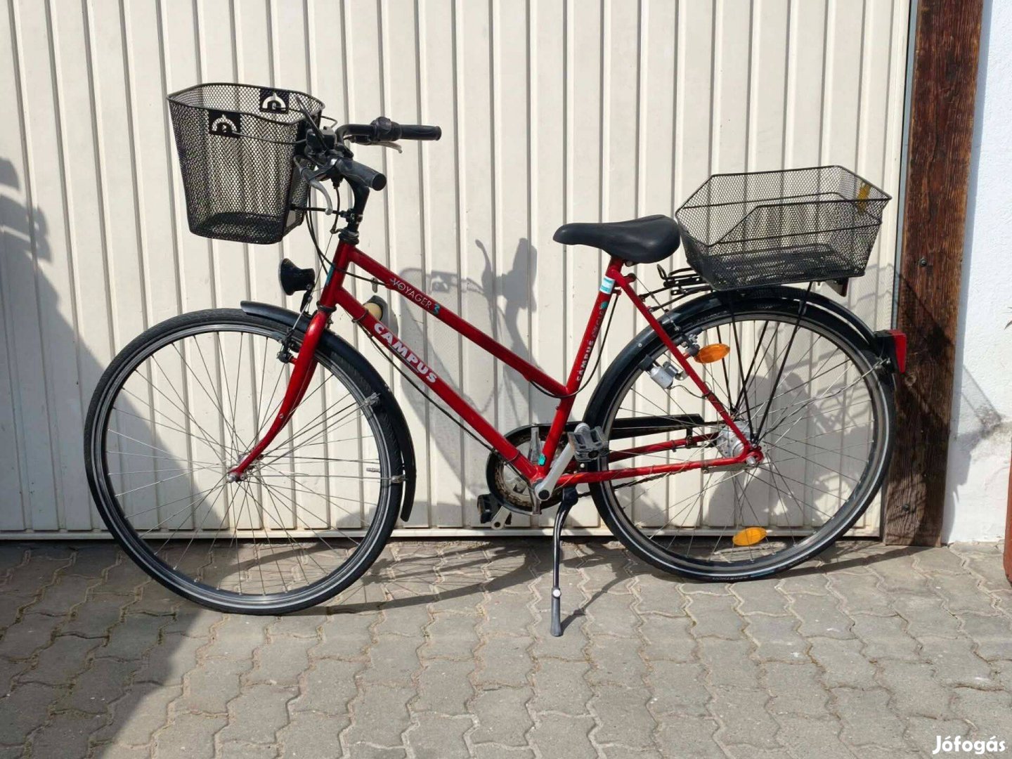 Eladó a képeken látható, piros színű Campus Voyager 3 típusú női (alacsony átlépésű) vázas kerékpár. Megbízható, kényelmes társ a mindennapi közlekedésben vagy kisebb túrákon.