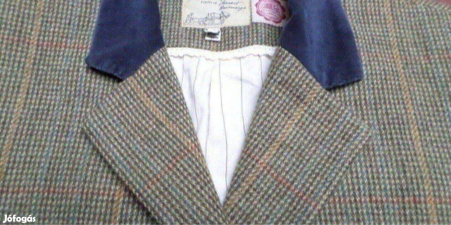 Eladó női Angol tweed gyapjú vadász stílusú zakó, blézer az új ár töredékéért. Prémium kategória, különleges design, egyedi igényes kivitel. Méret: 16-os, hossz-70 cm derék 100 cm bő L-es