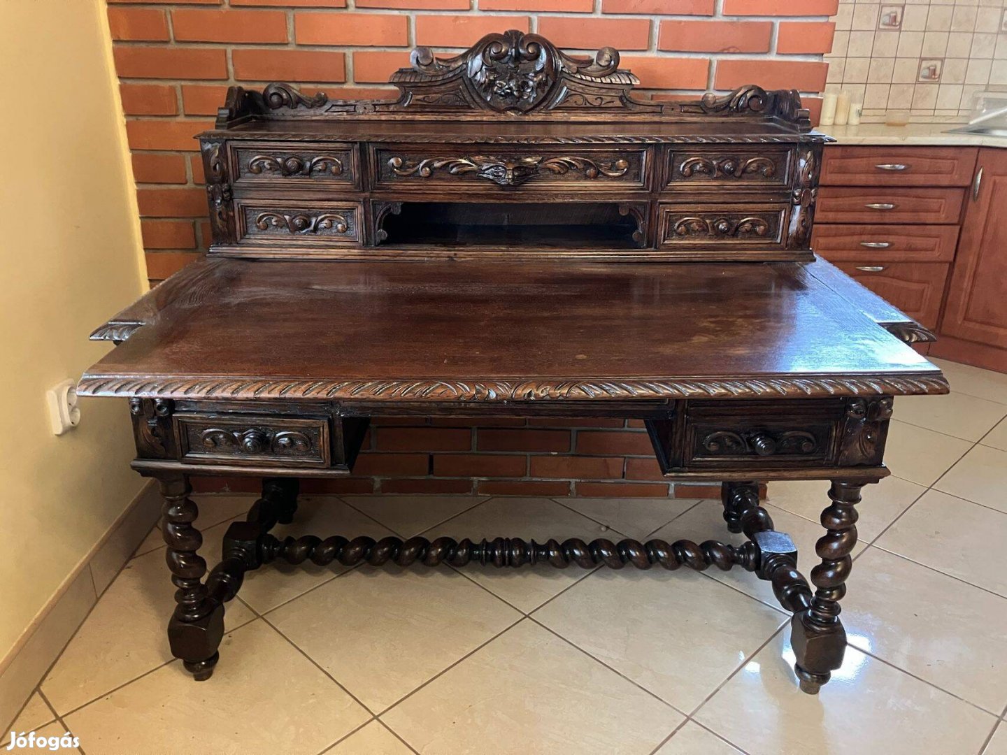 Ónémet gazdagon faragott restaurált felépítményes kihúzható íróasztal