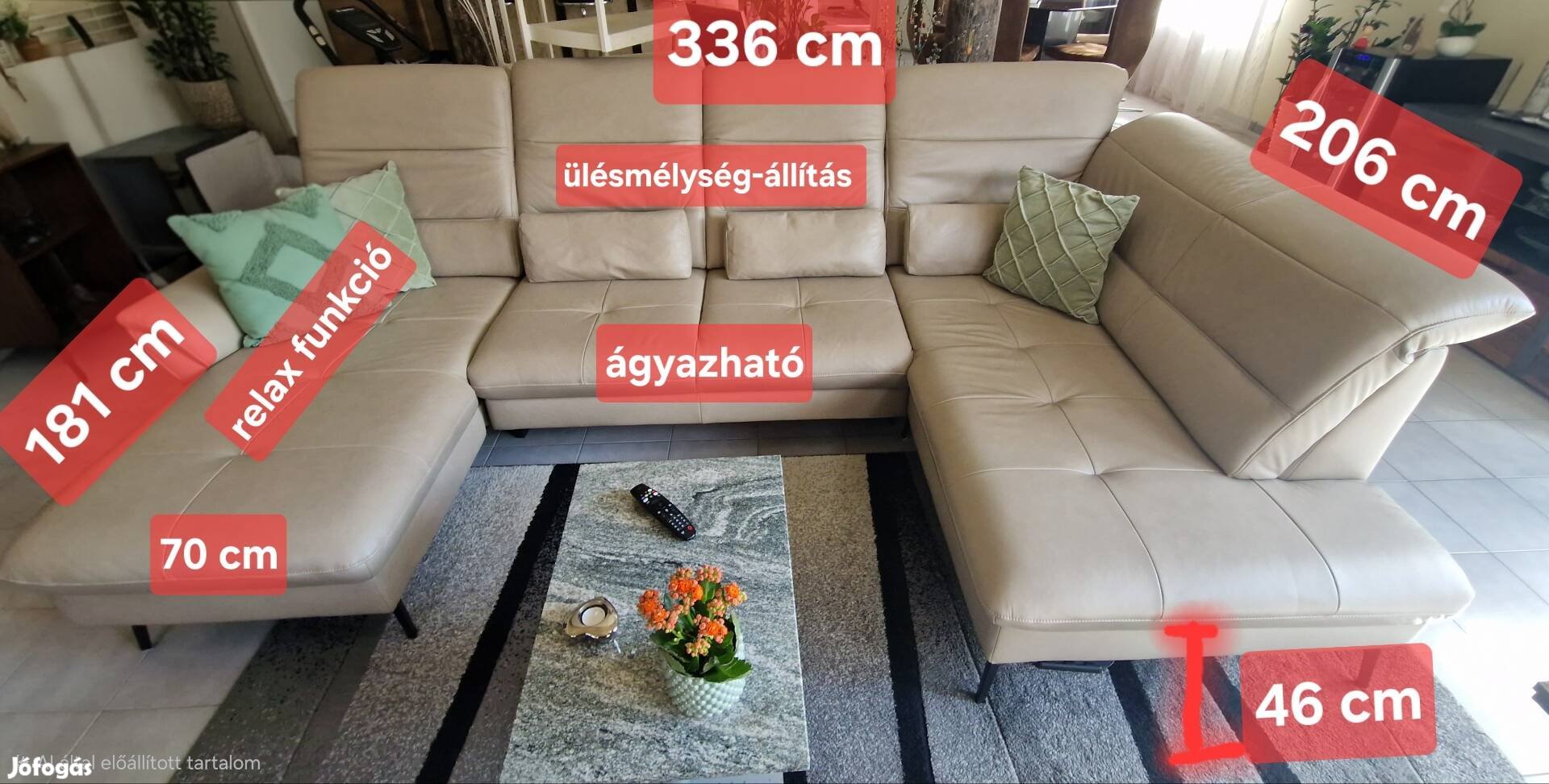 Eladó a képeken látható, nagyon szép, hibátlan állapotú, világos bézs színű, modern U alakú kanapé.