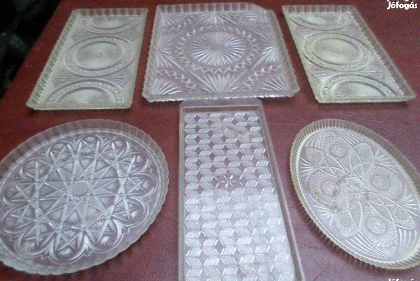 Eladó 6 db retro kör, téglalap, ovális formájú csipke mintás műanyag tálca a 70-es évekből. ár: 1900 Ft/db!!!