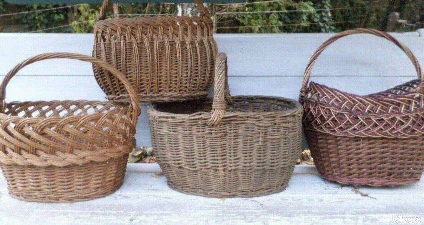 Eladó 4 db régi vessző bevásárló kosár és 1 db arany színű óriás ajándék kosár. ár:4400 Ft/db!!!