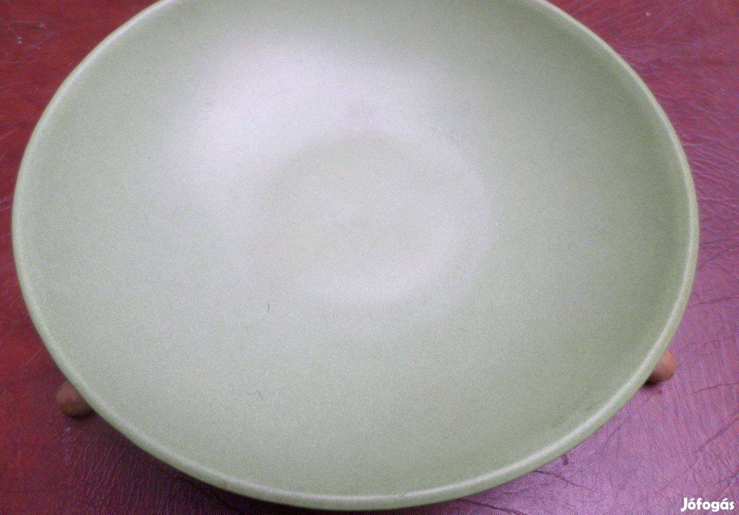 Eladó vintage Képcsarnokban vásárolt kerámia tál, kínáló szép, újszerű állapotban fém tartó konzol natúr fa gömb végű lábakkal, pasztell zöld színben . 30cm átmérő Eladó kerámia tál, kínáló réz design kombinációval a 70-es évekből szép állapotban. méret:20cm hosszú 15 cm széles 15 cm magas ár: 5700 Ft/db!!!