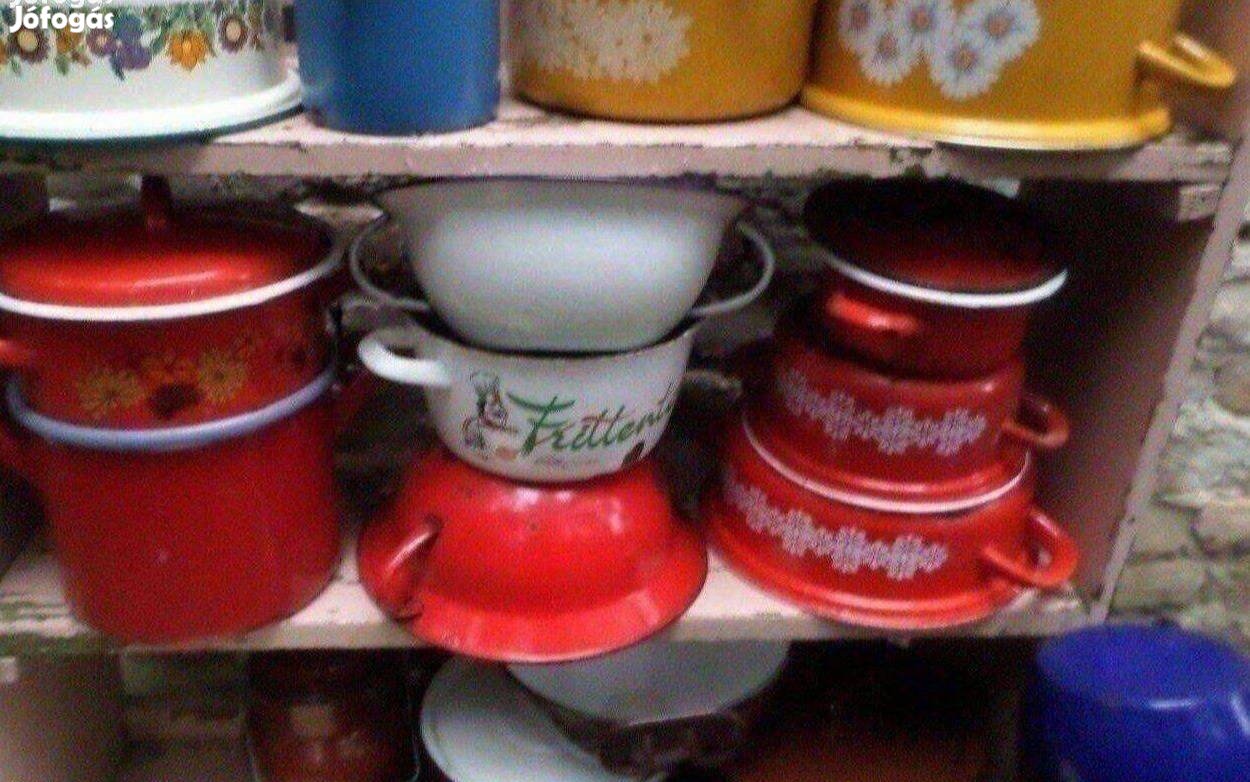 Retro zománcos lábas edény tál tányér serpenyő gyűjtemény