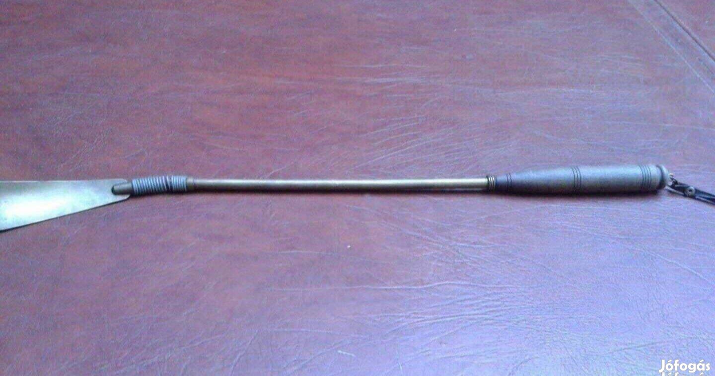 Eladó réz cipőkanál ,cipőhúzó fa nyéllel rugós kivitelben szép állapotban. méret: 60 cm hosszú