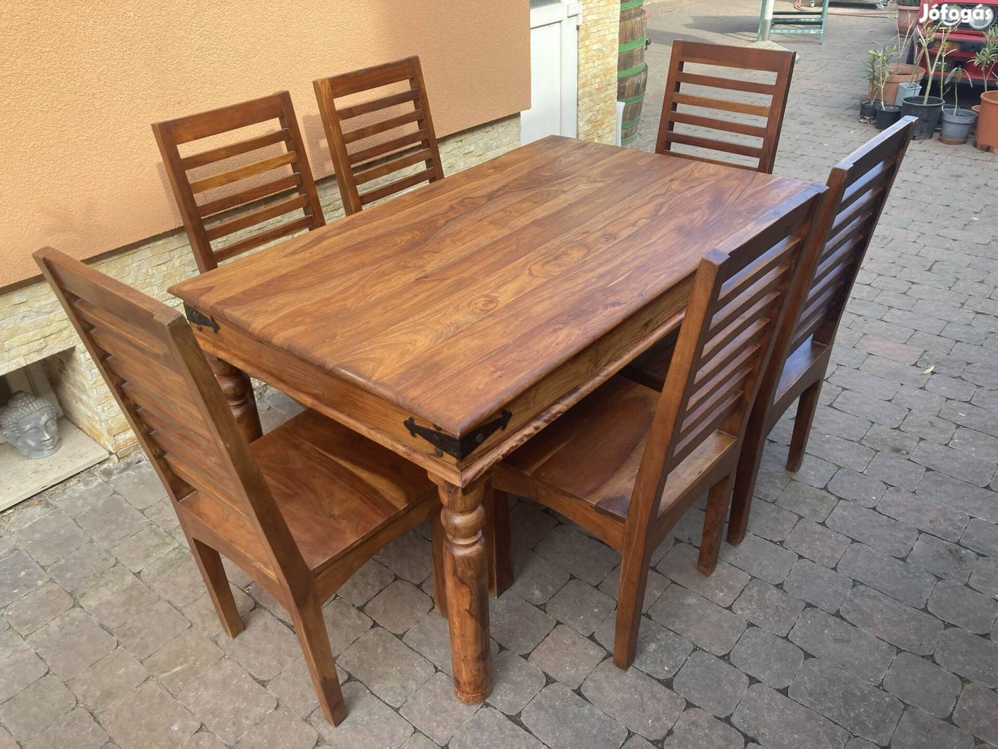Nehéz, masszív, stabil, tömör fa asztal, székek!