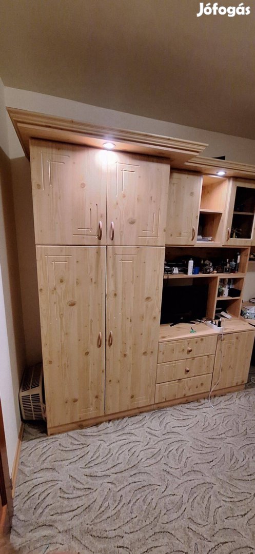 Eladó a képen látható fenyőmintázatú MDF fóliás szobabútot 300 x 210 méretben,a sarokasztal mérete 90 x 80