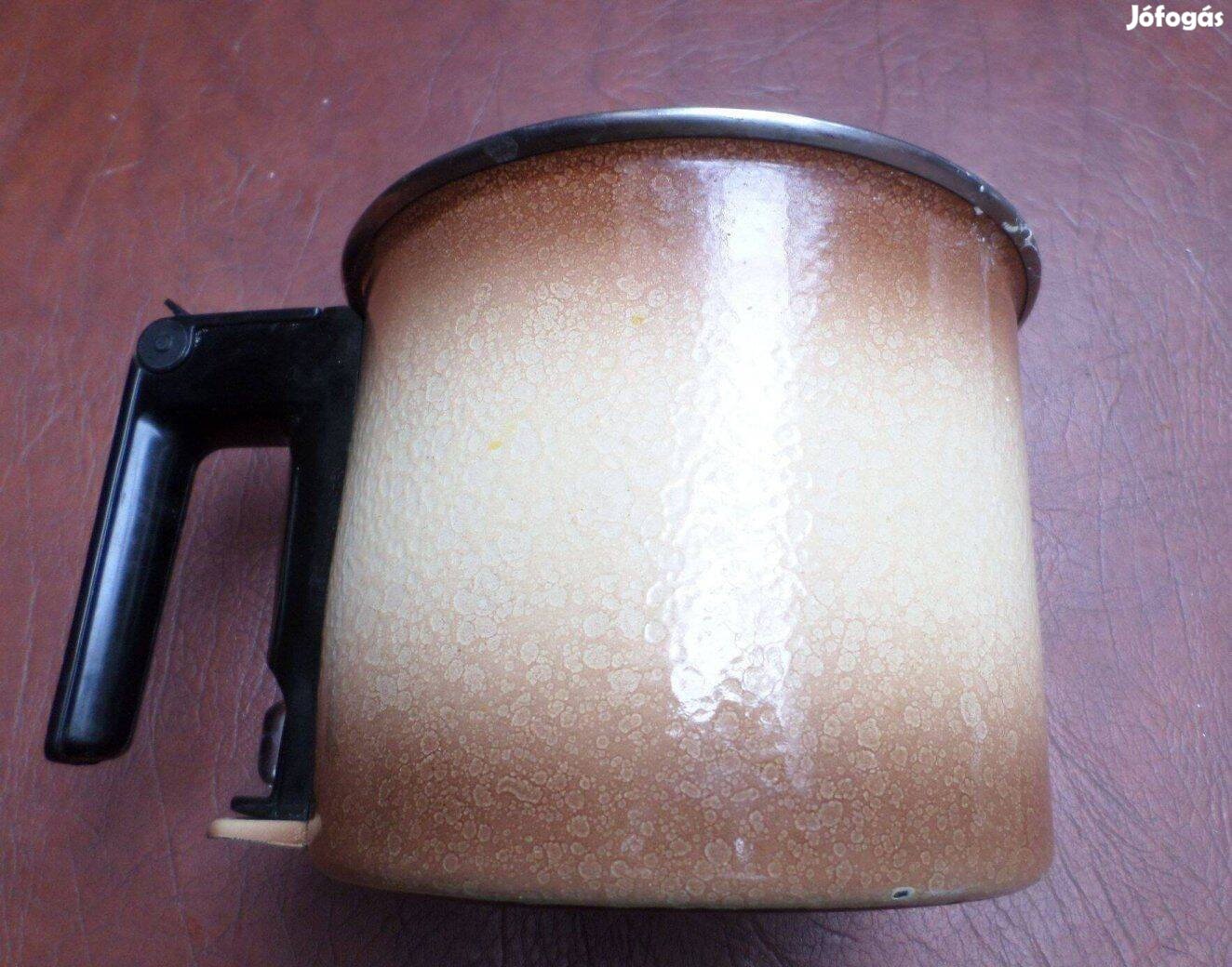 Eladó német Beka márkájú csúcsminőségű zománcos lábas -tejforraló szép állapotban. méret: 14 cm magas átmérő-17 cm 1.5 L-es