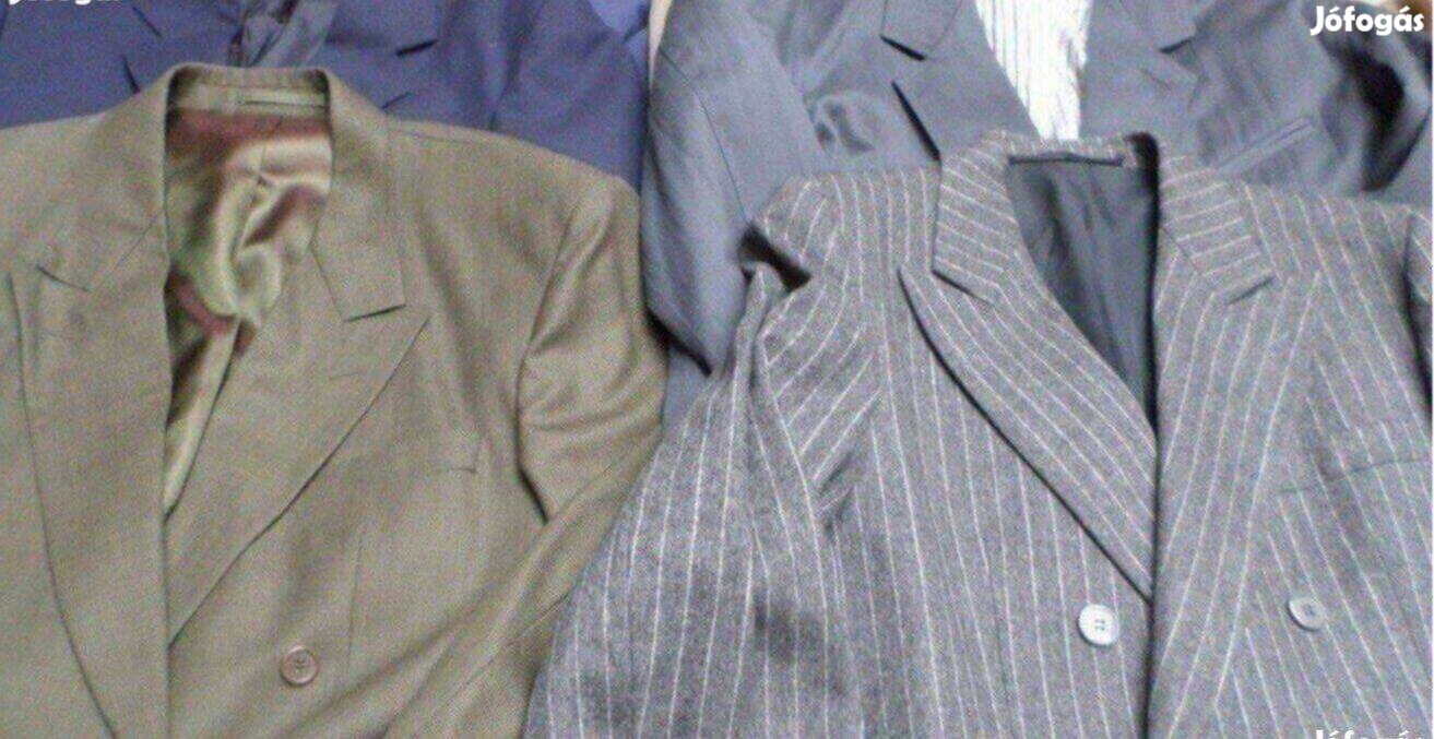 Eladó 7 db különféle gyapjú és műszál szövet retro zakó a 90-es évekből szép, tiszta állapotban. olcsón. méret:52-es L-es ár :4500Ft/db!!! Gyapjú szövet szürke csíkos zakó drágább árban.
