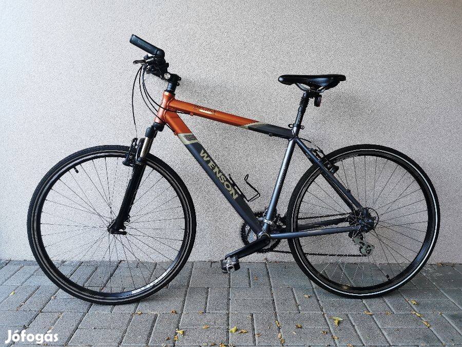 Eladó a képen látható Wenson aluvázas, könnyű, mégis igen masszív kerékpár kihasználatlanság miatt, a kerékpár kb: 4 éve kerékpárboltban, újjonan vásárolt, keveset futott, nagyon szép, újszerű állapotban, egyetlen kis festék sérülés rajta a felsővázon, új lánccal, új külső, belső gumikkal, nemrég bowdenezve, tökéletesen működő shimano váltókkal, alu fékkarokkal, V fékkel, hidraulikus, fixálható, olajfolyásmentes első teleszkóppal, teleszkópos üléscsővel, karbantartva és vigyázva rá, így vásárlás után nem kell rákölteni, azonnal használható, akár városi használatra, akár hosszú túrára is nyugodtan ajánlom.
