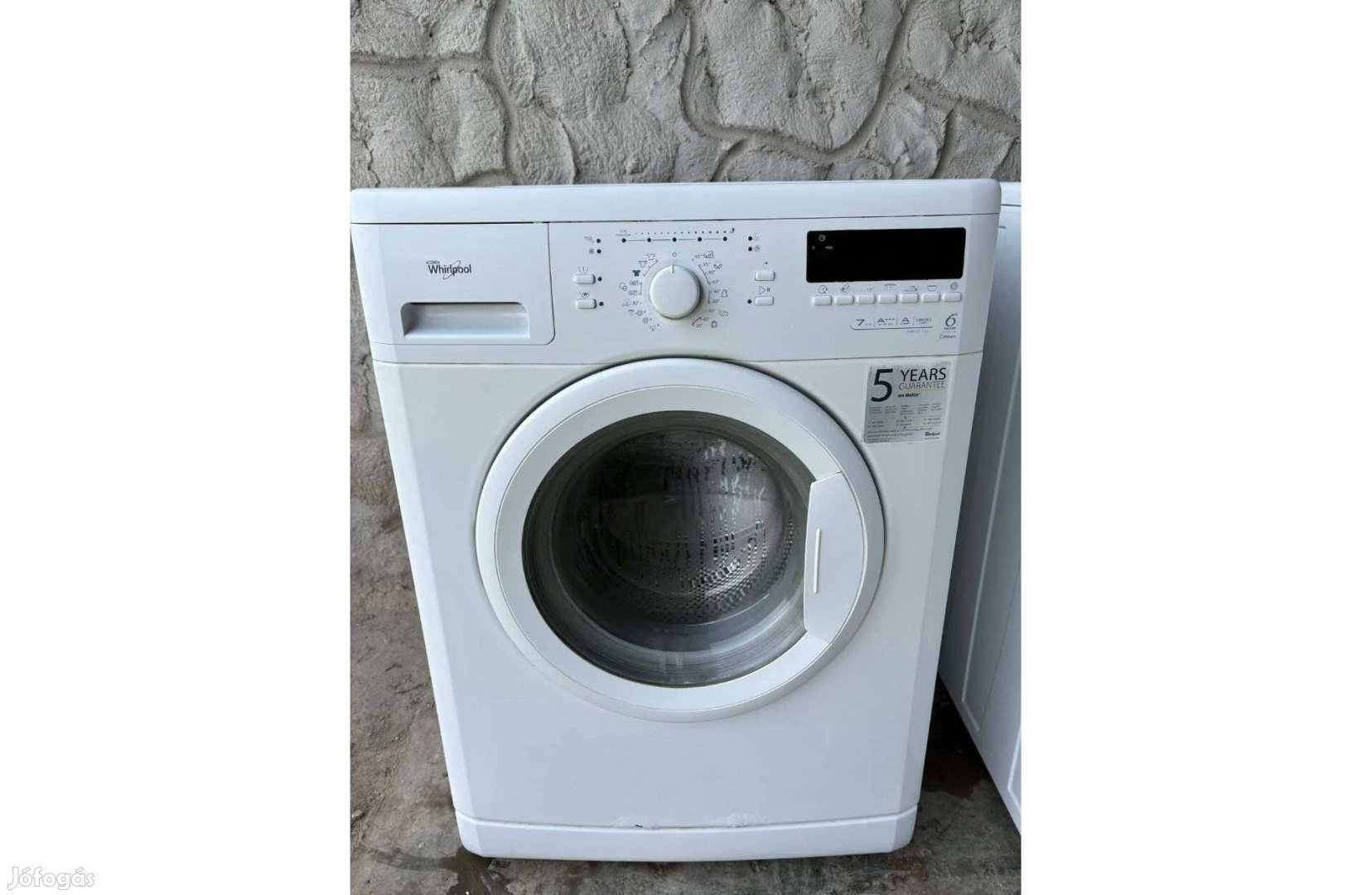 Eladó használt, de jól működő Whirlpool elöltöltős mosógép, energiaosztály: A+++, mosókapacitás: 7 kg, LCD kijelző, 6.érzék funkció, magasság: 85 cm, szélesség: 60 cm, mélység: 57 cm.