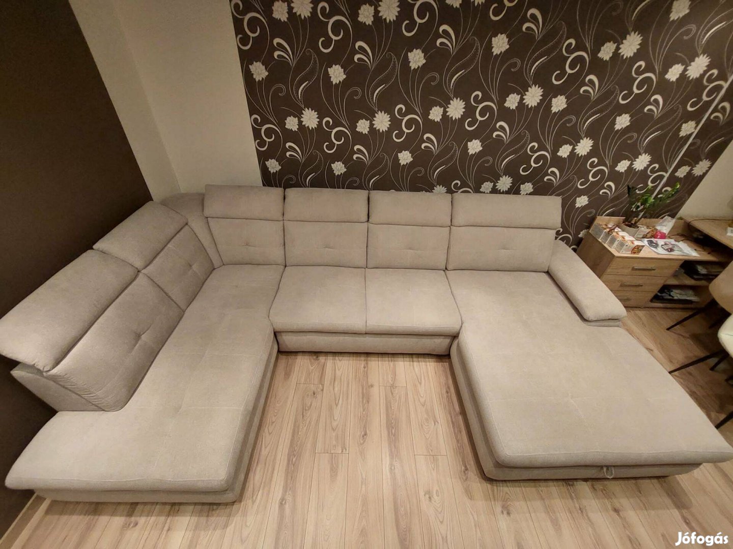 Willy, U-form kanapé, alig használt, újszerű, nagyon megkímélt állapotban. Sok helyere befér, és sokan tudnak ráülni. Kényelmes ülést ad, támasztja a hátat és a fejet a magas támlának köszönhetően.