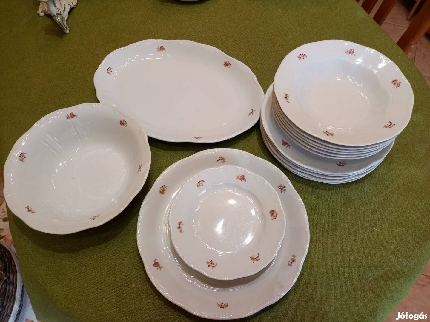 Sültes tálak, leveses tál, mély és lapos tányér a kép szerint.