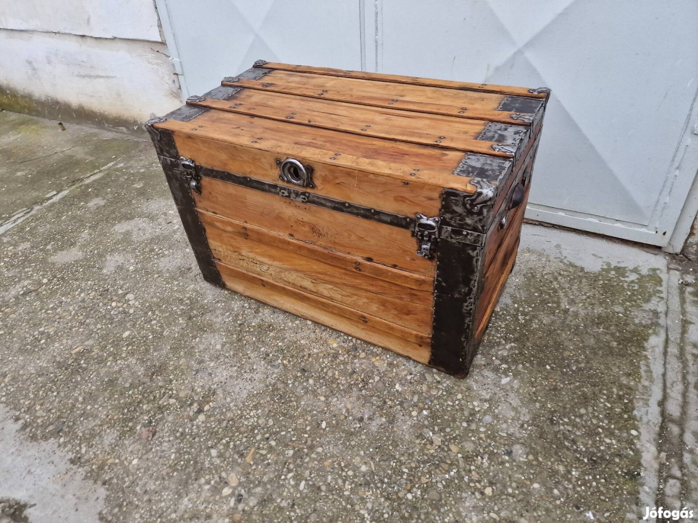 Antik utazó láda teljesen felujitva lekezeve belső is szép azonnal használható állapotban ár 42000ft