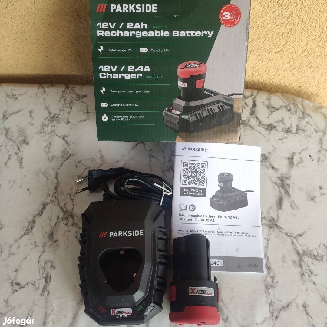 Parkside 12v 2Ah akkumulátor + töltőkészülék . Van rajta még 2- év garancia, blokkot adom hozzá.