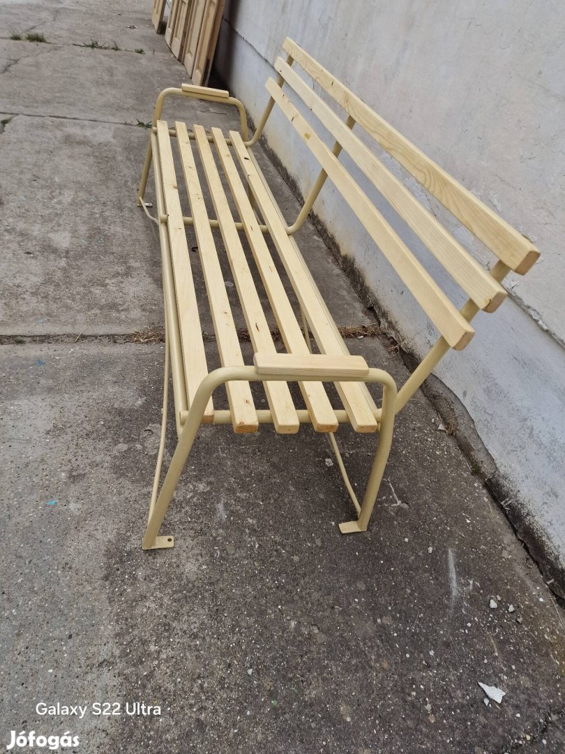 Retro csővázas extra kényelmes kerti pihenő pad szemcseszorva szinterezve porfestve lécek különleges egyedi kerti bútor ápoló olajjal kezelve 200cm ára 49000ft több darab van