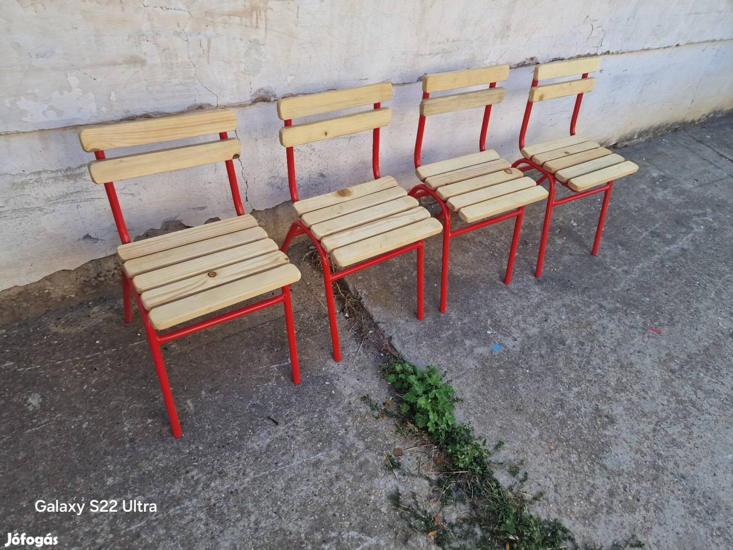 Retro óvodai gyerek szék teljesen felujitva szemcseszorva szinterezve porfestve lécek különleges egyedi kerti bútor ápoló olajjal kezelve ár 9000/db tíz évig minimum nem kell festeni