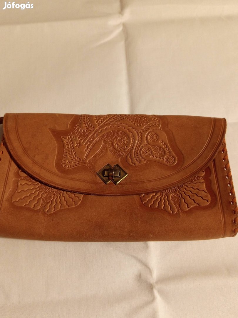 Lengyel , bőrből készült, béleletlen ,nyomott mintás női táska, melynek a kapocsa jól záródik , eladó.
