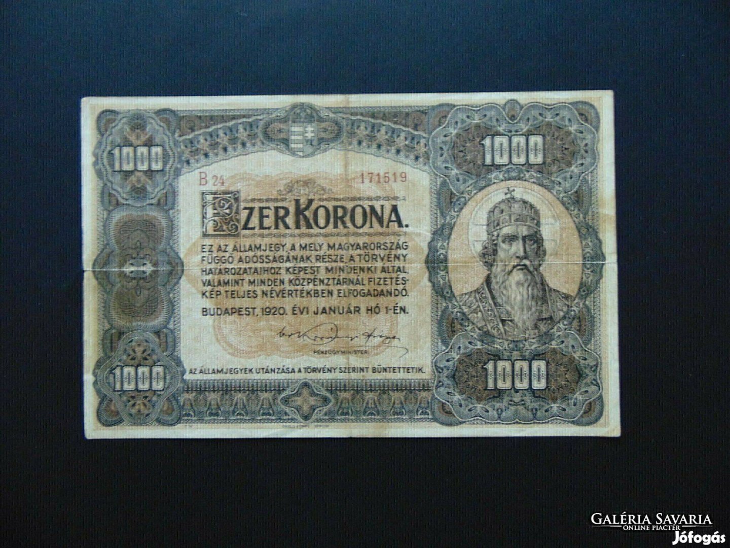 1000 korona 1920 Barna SOR és Sorozatszám ritkább változat
