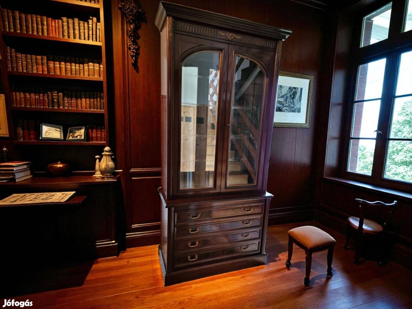 Kb. 223 cm magas, gyönyörű, Bécsben készült angol stílusú vitrin. Pár apró karctól eltekintve, kivételesen szép állapotban!
