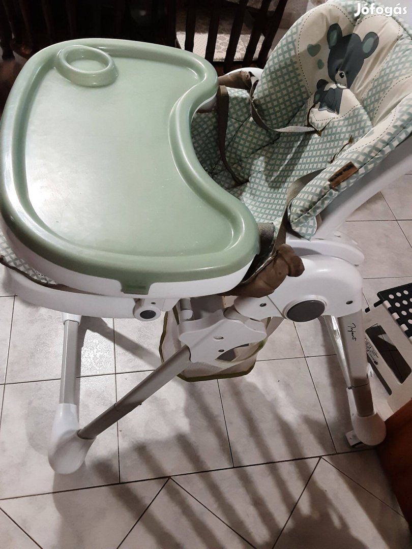 Eladó használt Baby mix etetőszék. Zöld színű. Használatból eredő hibáját fotóztam.