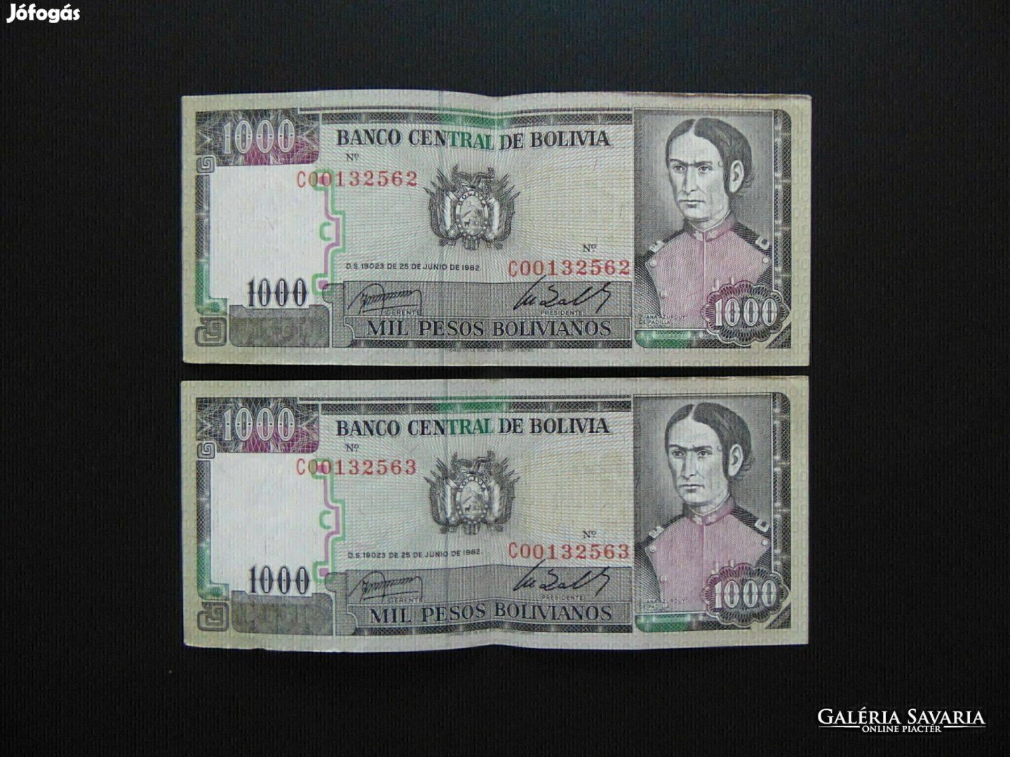 Bolívia 2 darab 1000 bolivár 1982 Sorszámkövető ! 02