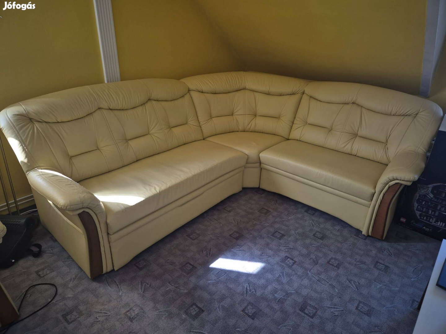 Eladnám a képeken látható sárga bőr sarokkanapémat. Használt, de kényelmes, az egyik karfán kopás található. Ingyen adom, de a szállításban nem tudok segíteni, neked kell elszállítanod.