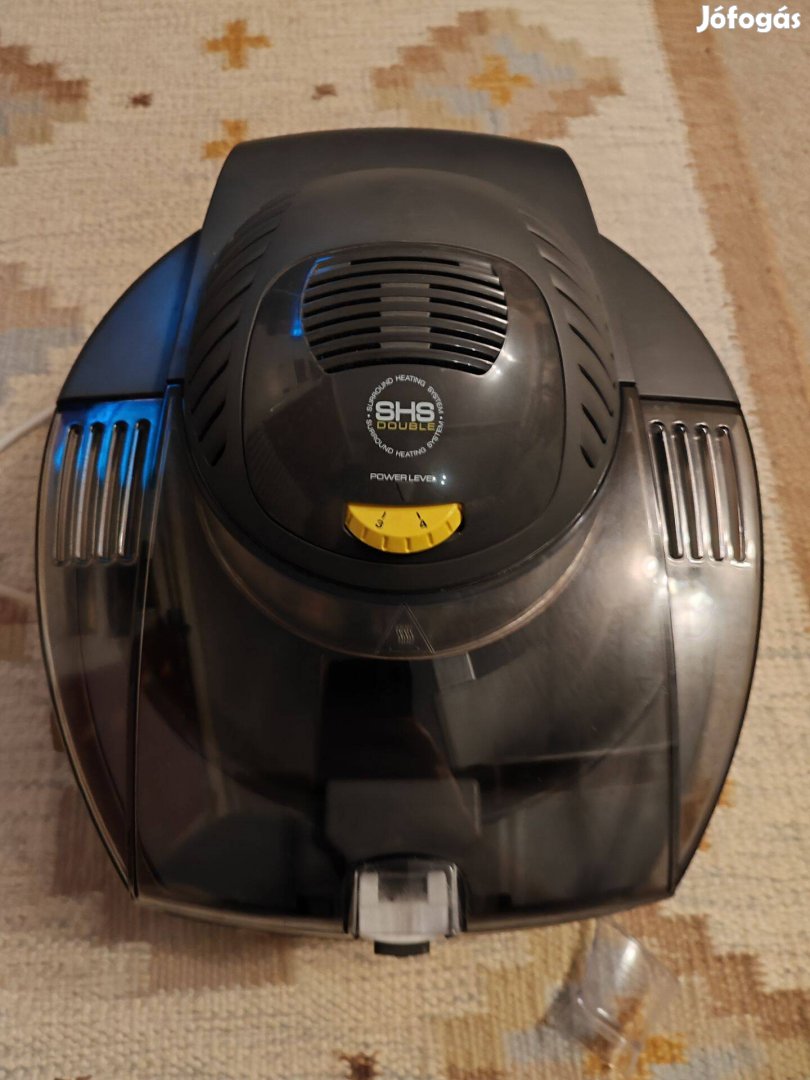 mint a képeken, működik, külön kapcolható légkeverés és alsó fűtőszál, de sajnos a kar aminek forognia kellene benne nem indul. igy is használható csak át kell keverni benne az ételt