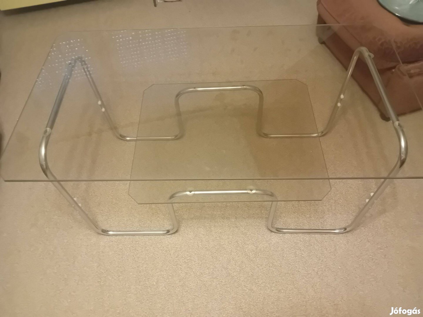 Eladásra kínálom a fényképen lévő üveges dohányzóasztalt.