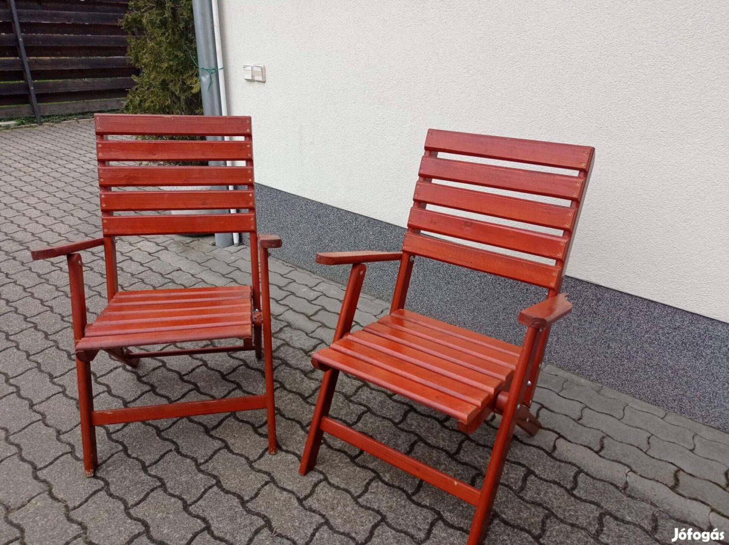 Eladó jó állapotban levő 2 db kerti szék , összecsukható. Szél.44 cm. mag. 93cm, ülőmagasság 44 cm.