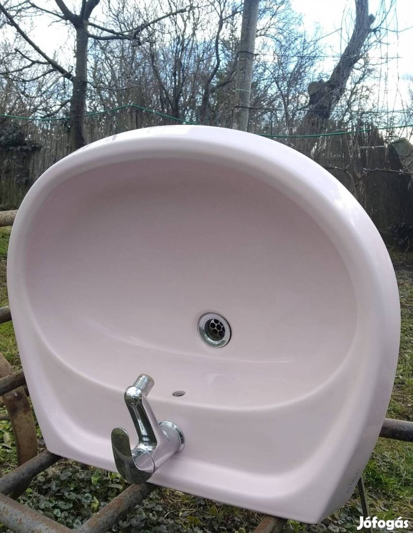 Eladó bontott, halvány rózsaszín Alföldi mosdókagyló (65x52 cm), keverőfejes csapteleppel