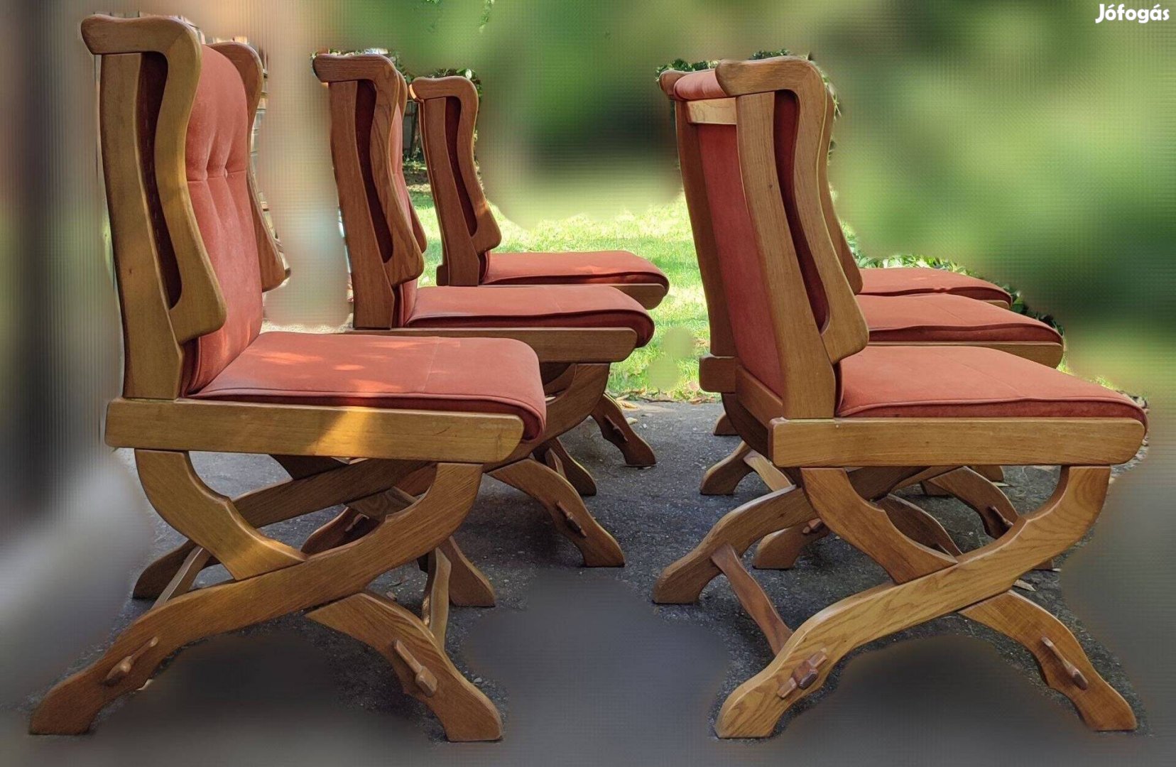 6 darab kézműves készítésű, tömör tölgyfavázas étkezőszék.