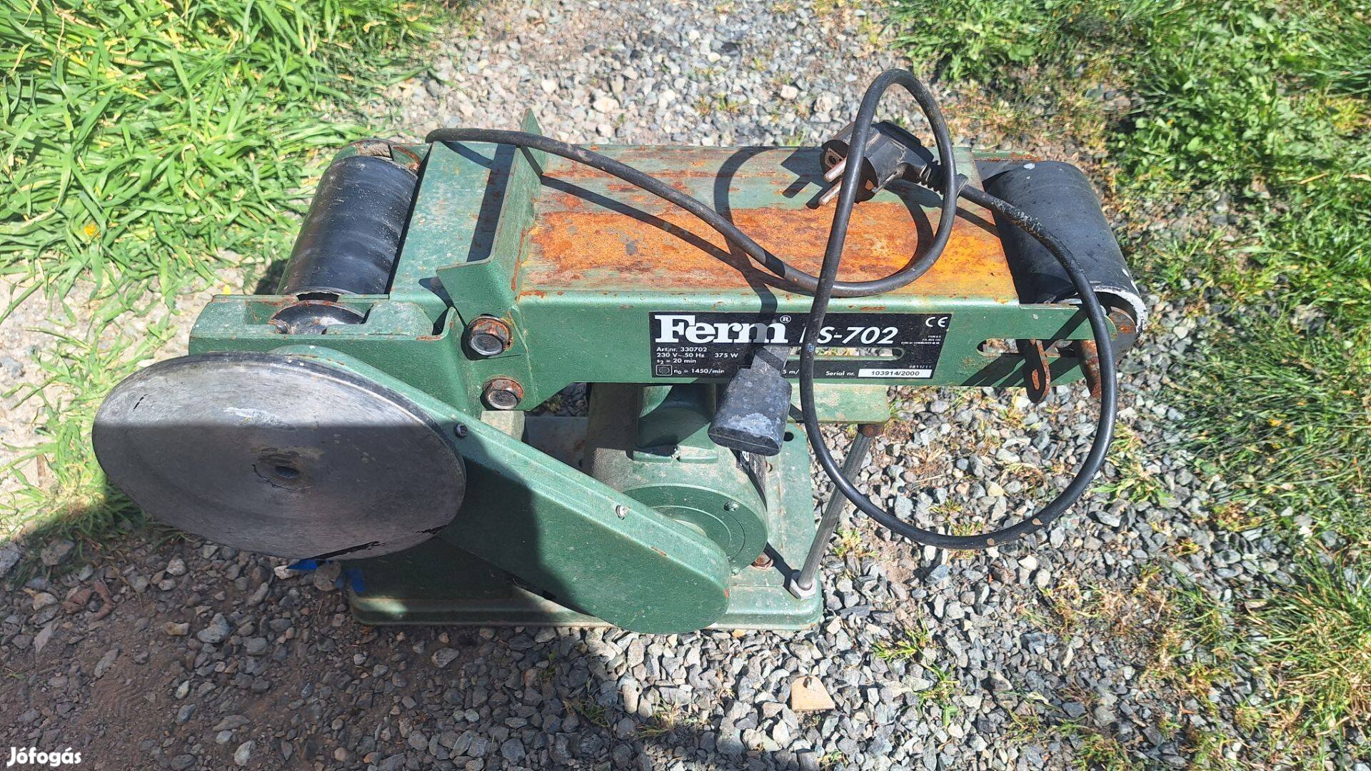 Ferm asztali tányéros szalagcsiszoló a képeken látható hiányos állapotban.