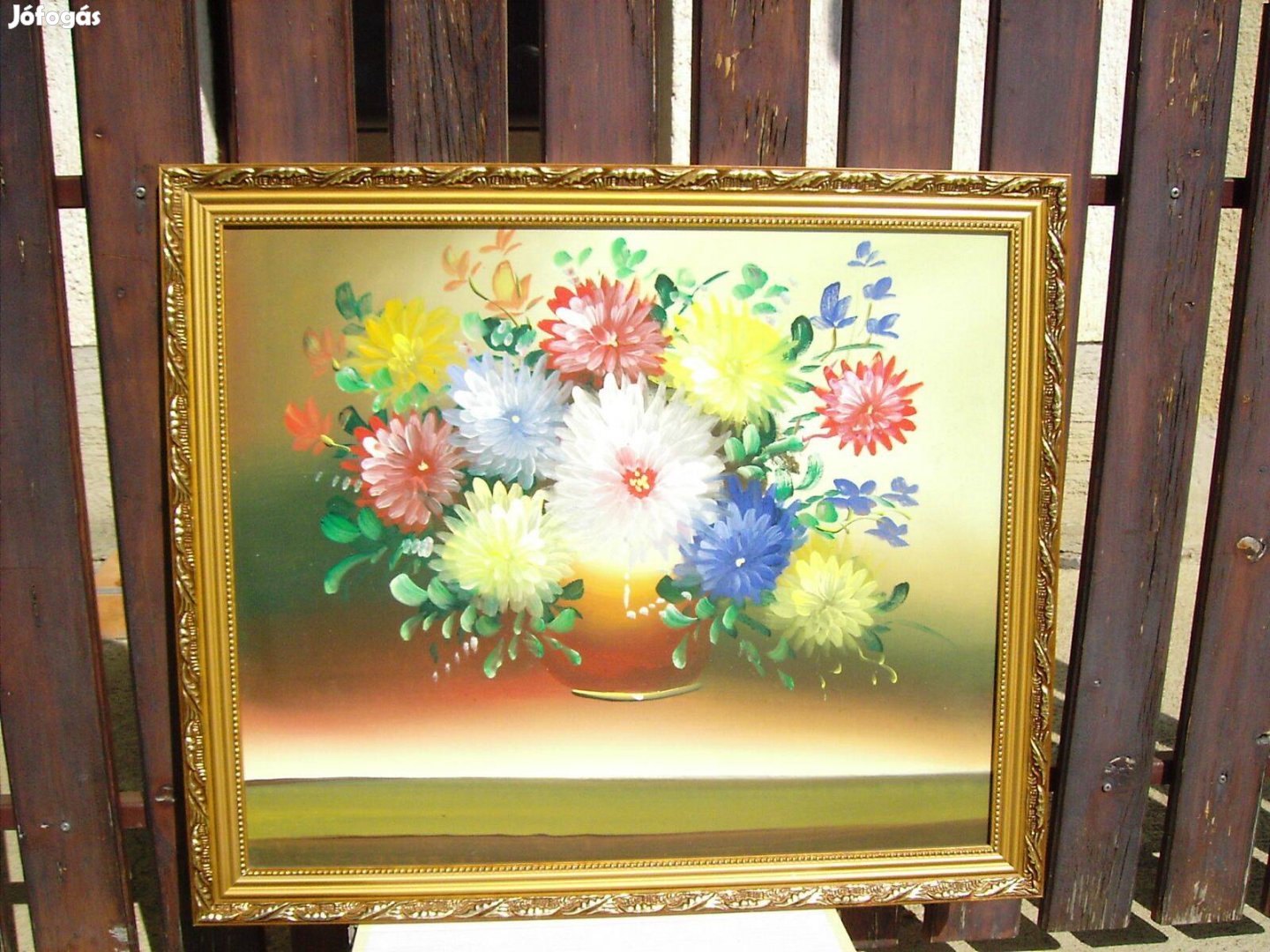 Eladó a képen látható hibátlan virágos festmény ,szép keretbe. Mérete : sz. 70 cm, m. 60 cm.