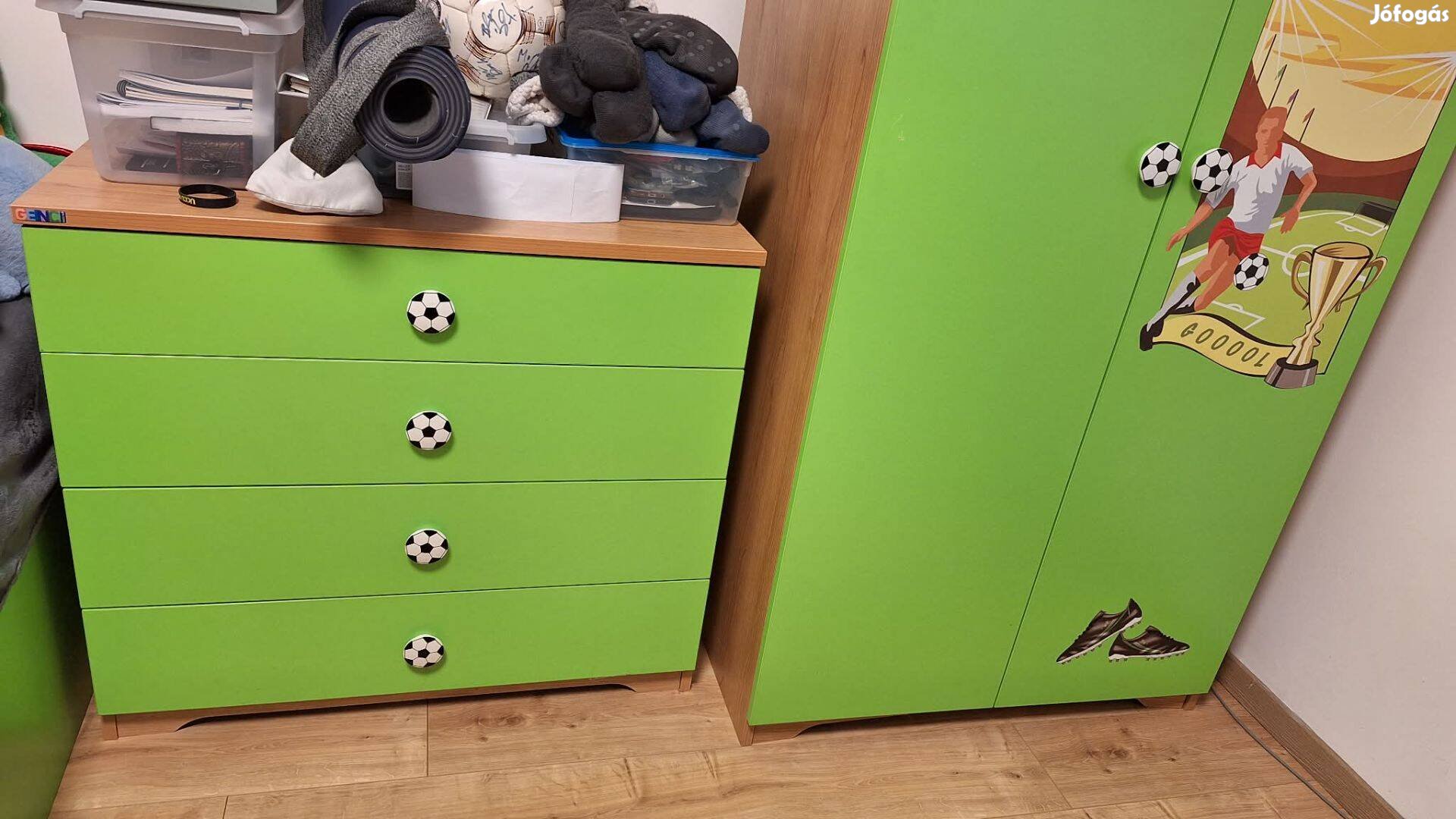 Eladók a képeken látható bútorok, lehetőleg egyben, de akár külön-külön is. Használt, de igen jó állapotban, lapra szerelten. Ruhásszekrény: 200x90,5x60, komód: 82,3x91x47,5, ágy: 205x209x98, kisszekrény: 200x63,5x47,5. Magasság, szélesség, mélység. Elvihető Rábagyarmatról, szállításban nem tudunk segíteni. Ár egyben: 200.000,-Ft, alkuképes. Külön-külön megegyezés szerint.