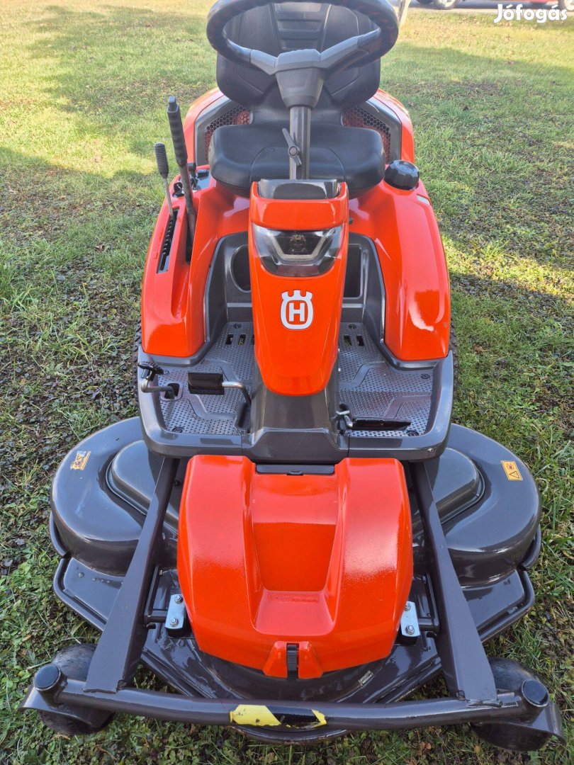 Husqvarna Rider 318 x hatsokerekhajtas. A kepek magukert beszelnek. 18 lovas 1 hengeres motor, hydro valto, 3 keses vagoasztal, abbol is a nagyobb 112 cm. 2 szetont futott