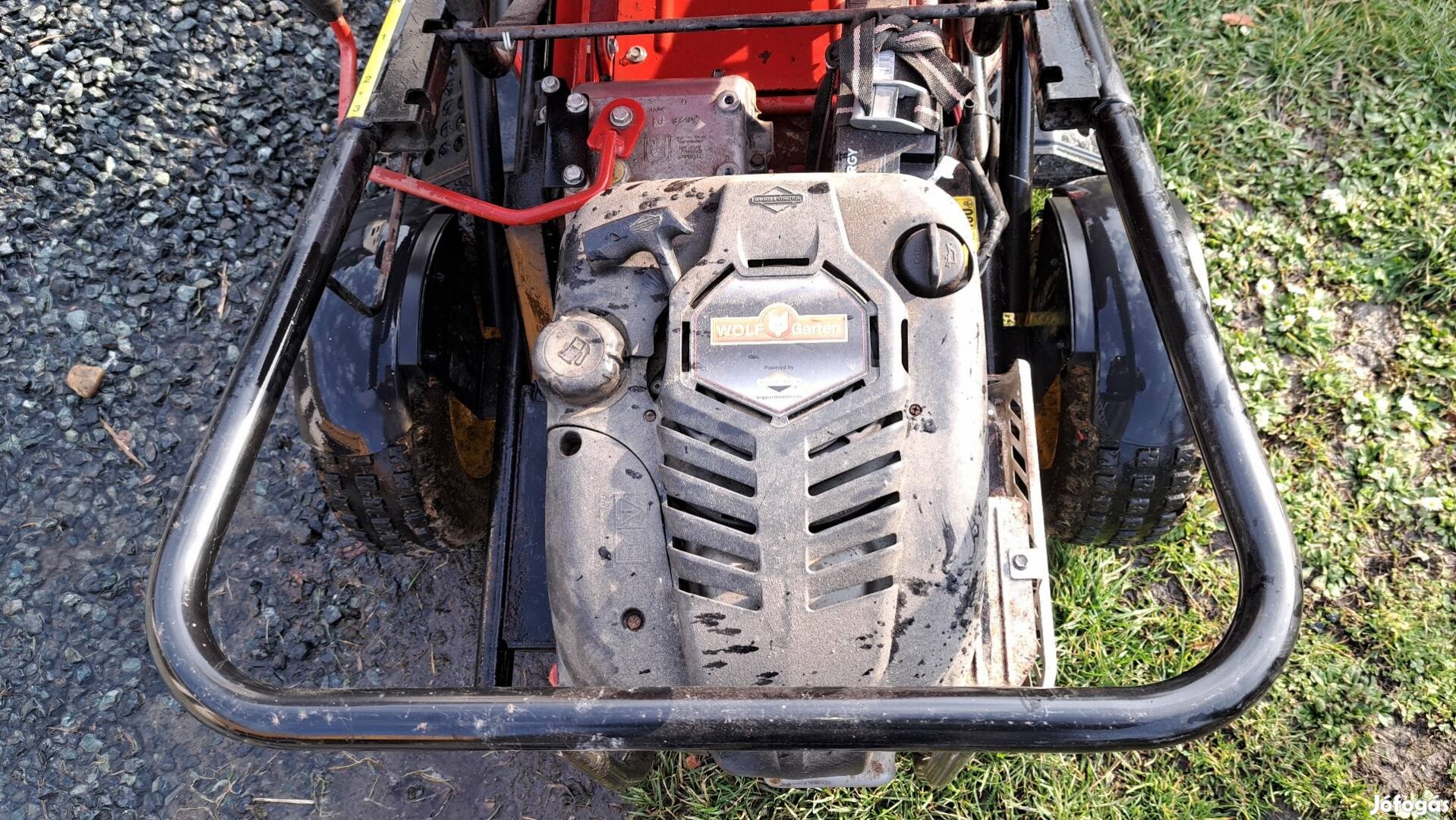 6le briggs motoros.Indul önindítóval és berántva is.Kaszaház nélkül a gyerekeknek is jó szórakozást nyújt.