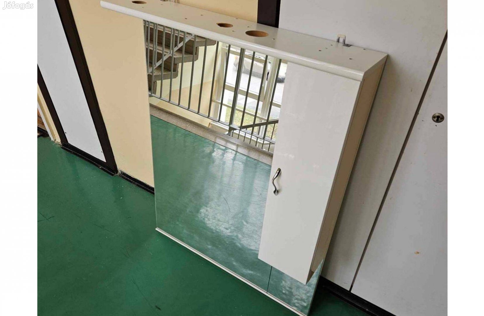 Eladó a képeken látható használt fali fürdőszobai tükör kis szekrénnyel beszerelhető világítással és konnektorral. A szekrény oldalán van egy kis sérülés (fotóztam). Mérete: 81 x 14 x 104cm, szekrénymérete: 18 x 68cm. Ár: 15000ft