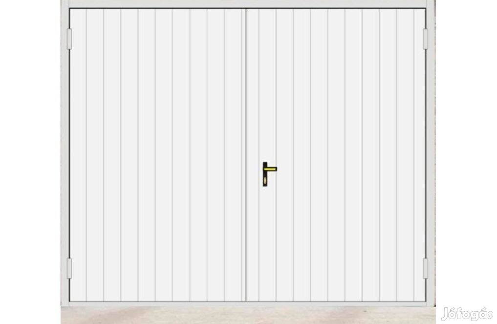 Garázskapu PR1009 kétszárnyú, matt fehér T7, 11cm függőleges bordázat, 0Ft szállítás, 0 Ft szerelés bárhová eladó, áfás számlával, új, garanciával.
