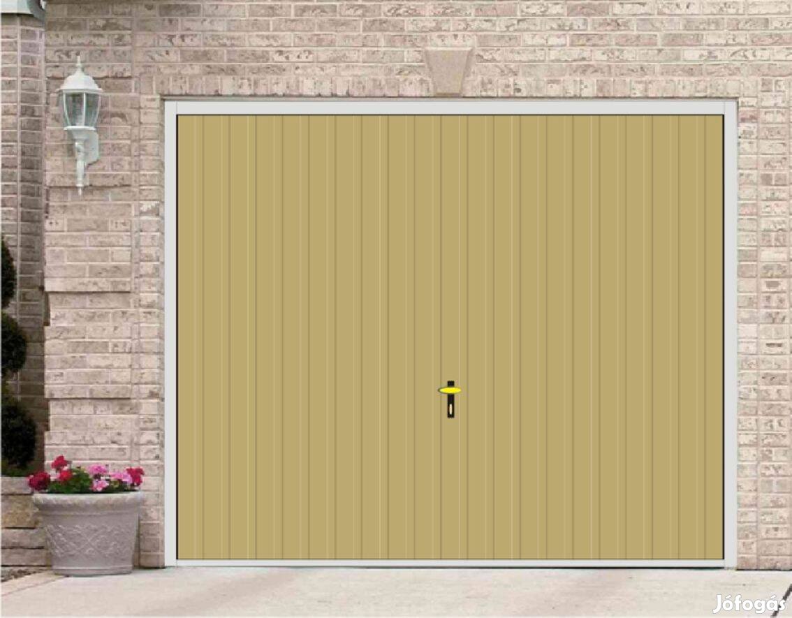 Garázskapu PR1017 billenő, fényes homok szín, opciókkal, T7 függöleges 11 cm, bordázat, kapumotor, szigetelés, 0Ft szállítás, 0 Ft szerelés bárhová eladó, áfás számlával, új, garanciával.